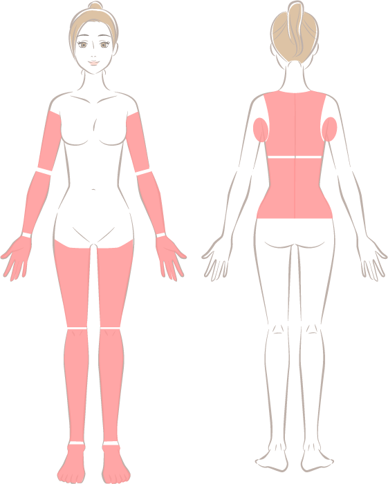 - SHR光脱毛なら、従来のメラニン色素に反応して熱を発する方法ではないため、日焼けをした肌でも使用できます。色黒の方や、ほくろの多い方も安心して使用できます。